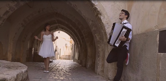 E così inizia il video, con una ragazza, la cantante del gruppo, che vestita a festa passeggia per le vie di un quartiere. Incuriosita da un casolare abbandonato, entra e trova un vecchio libro con scritto Sicilia. Lo apre e da qui inizia il viaggio. Quasi come in un sogno, si ritrova in questa magnifica terra, dove man mano incontra i musicisti, gli componenti del gruppo. Il brano è pieno di rimandi ai colori che caratterizzano il nostro territorio, così a ogni strumentista è stato affiancato appunto un colore, diverso ogni volta, rappresentato da un fiore, che la ragazza prenderà in regalo.