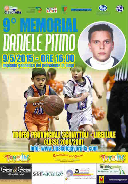 Un canestro, la gioia di stare insieme, un sorriso per apprezzare la vita sarà il messaggio che uscirà dal Raduno del Minibasket, legato al Memorial “Daniele Pitino”, che si svolgerà sabato prossimo 9 maggio alle ore 16,00 al tensostatico di Jungi.