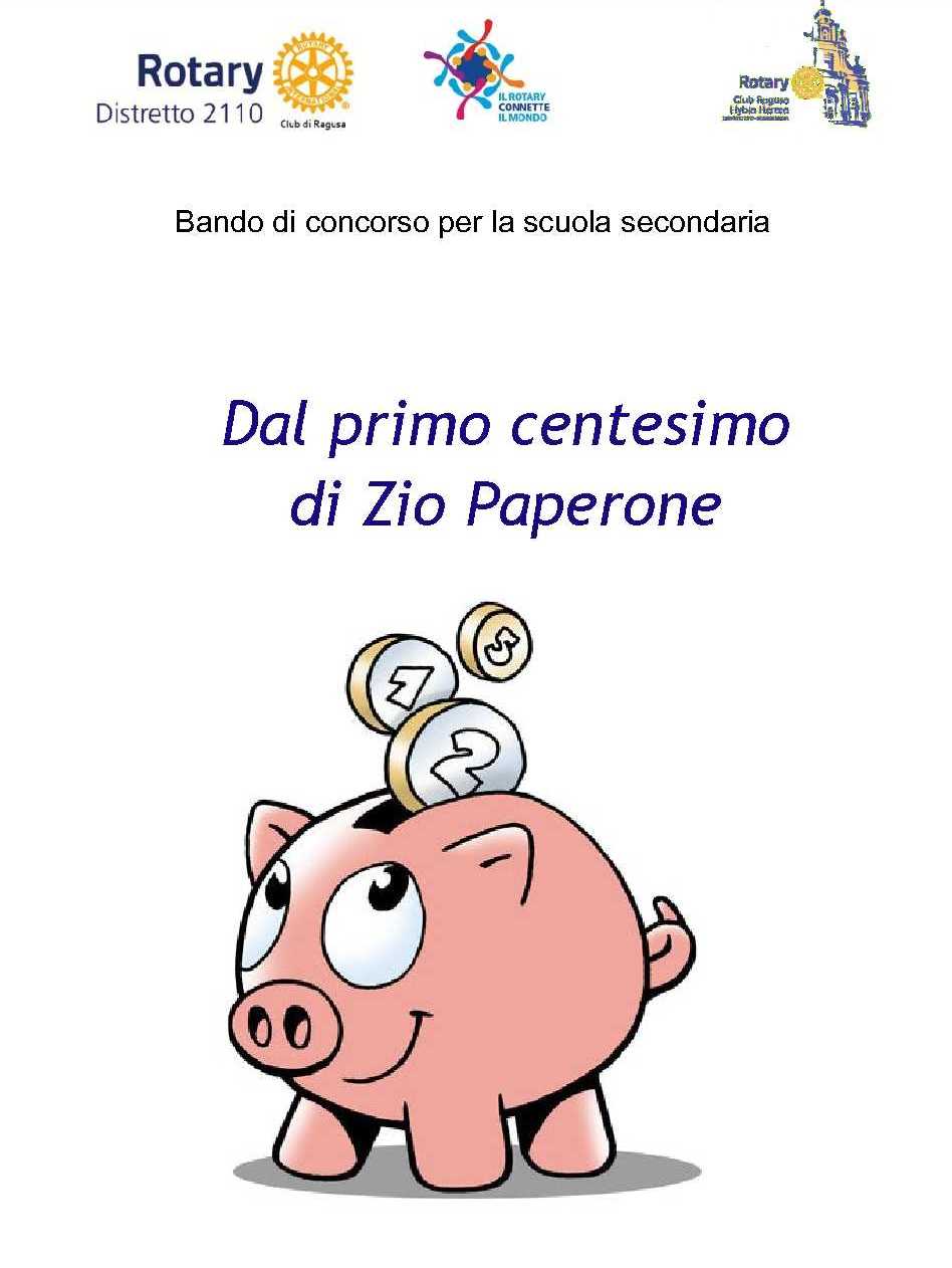 Ragusa, 17 gennaio 2020 – I club Rotary di Ragusa e Ragusa Hybla Heraea, sul solco tracciato nel corso della precedente esperienza formativa, risultata molto positiva e coronata da notevole successo e di partecipazione degli alunni e di comunicazione mediatica, hanno progettato per l’anno sociale 2020-2021 lo svolgimento di un concorso tra gli alunni delle 1^ classi delle scuole secondarie di Ragusa sul tema: “Dal primo centesimo di Zio Paperone”. Obiettivo è quello di far conoscere ed approfondire le tematiche inerenti alla storia della moneta e alla consapevolezza dell’uso del denaro nella vita quotidiana. Il concorso sarà diviso in due sezioni: produzione di un testo narrativo e realizzazione di un elaborato grafico pittorico.