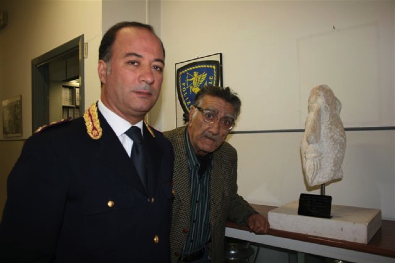 #Ragusa, 8 gennaio 2016 – Ieri, negli Uffici della Sezione Polizia Stradale di Ragusa, il maestro d’Arte Alfio Nicolosi ha donato al Dirigente della Sezione, Vice Questore Aggiunto Gaetano Di Mauro, una scultura in pietra, raffigurante il volto di Giulio Cesare, promulgatore, nel 45 a.C, della lex Julia Municipalis, la prima legge a contenere regole del codice della strada.