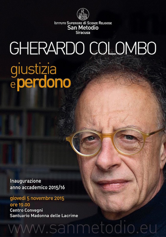 Alle ore 19.00 al centro convegni prolusione di Gherardo Colombo su "giustizia e perdono" e subito dopo presentazione dell’anno accademico da parte del direttore dell'ISSR don Nisi Candido.