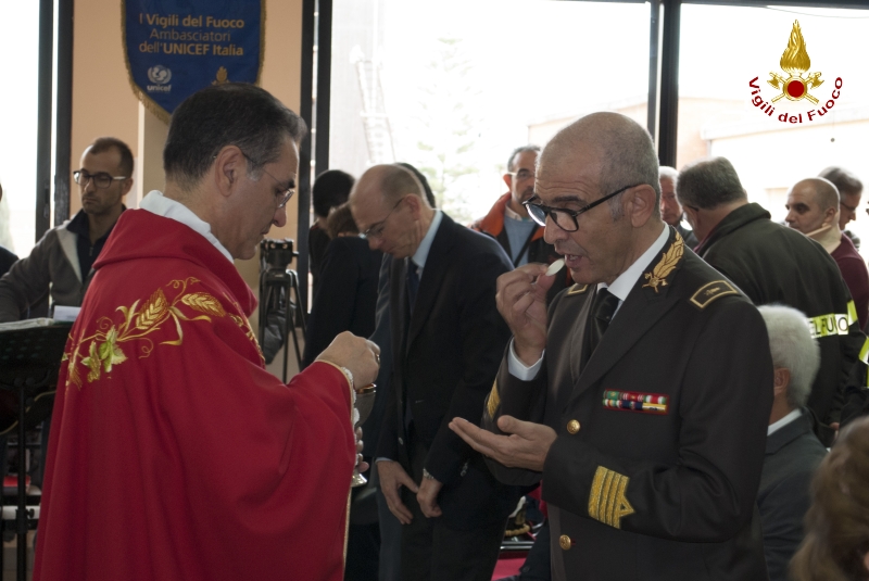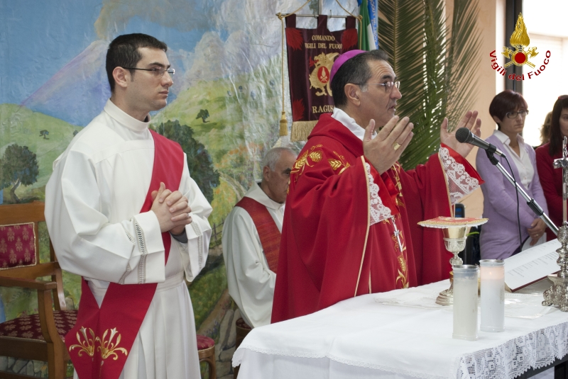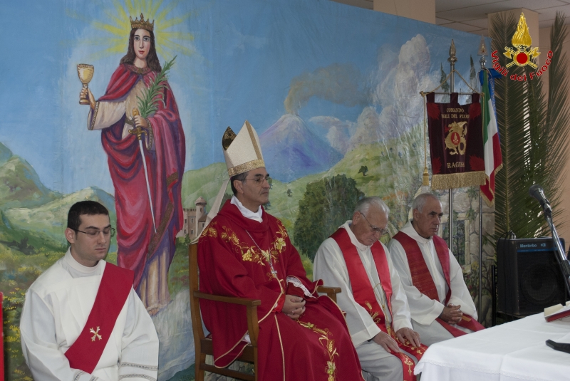 Ragusa, 4 dicembre 2015 – Alla presenza delle autorità, tra cui il Prefetto e il sindaco di Ragusa, il vescovo Mons. Carmelo Cuttitta ha officiato per i Vigili del Fuoco il rito in onore di Santa Barbara, protettrice del Corpo (oltreché della Marina, dei minatori e co-patrona di Malta).