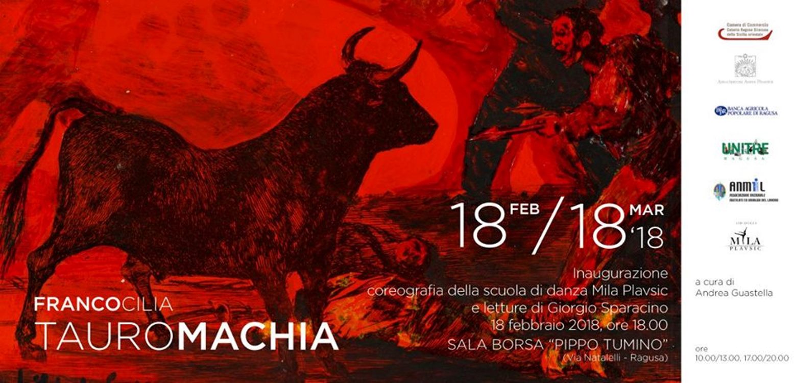 Ragusa, 17 febbraio 2018 – Domenica 18 febbraio 2018, alle ore 18, presso la Sala Borsa “Pippo Tumino” della Camera di Commercio (via Natalelli), sarà inaugurata la mostra di Franco Cilia “Tauromachia”, a cura di Andrea Guastella.