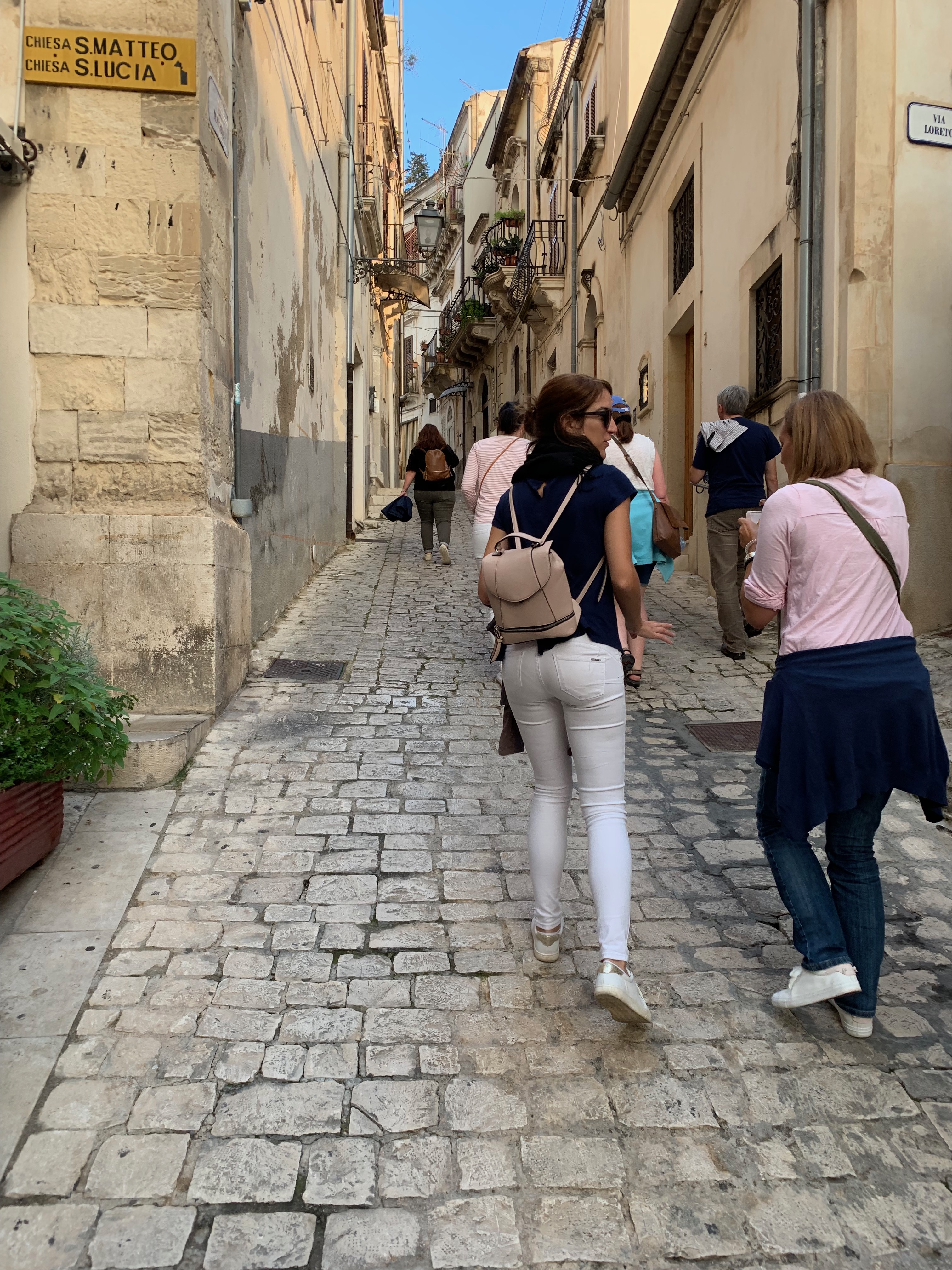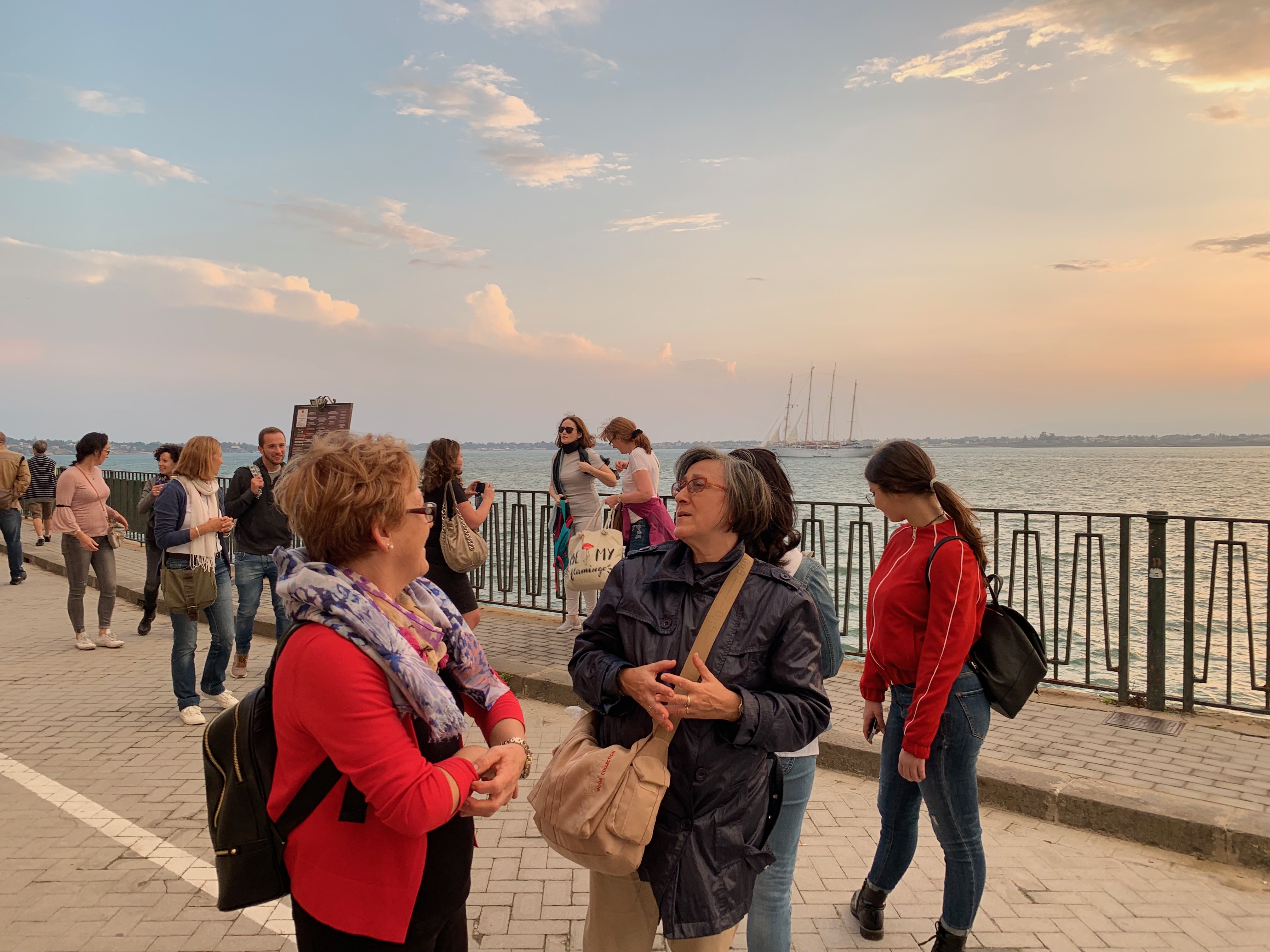Dopo l’accoglienza, splendida e gradita dai partecipanti, nel pomeriggio di sabato 20 ottobre i docenti hanno visitato Marina di Ragusa e poi, con visita guidata (la bravissima Desireé Marinero) Scicli, vista dall’alto, dall’acropoli di San Matteo e poi nel centro storico con la visita ad alcuni palazzi. Domenica non poteva mancare una visita culturale alla “metropoli della grecità negli Iblei”, la splendida Siracusa, sotto la sapiente guida di Pietro Piazza che ha condotto gli insegnanti prima nello splendore dei reperti del Museo Paolo Orsi, poi alla Neapolis (Teatro Greco, Ninfeo, Orecchio di Dionisio…) poi tra le viuzze medievali di Ortigia e della Giudecca, al Museo del Mare…