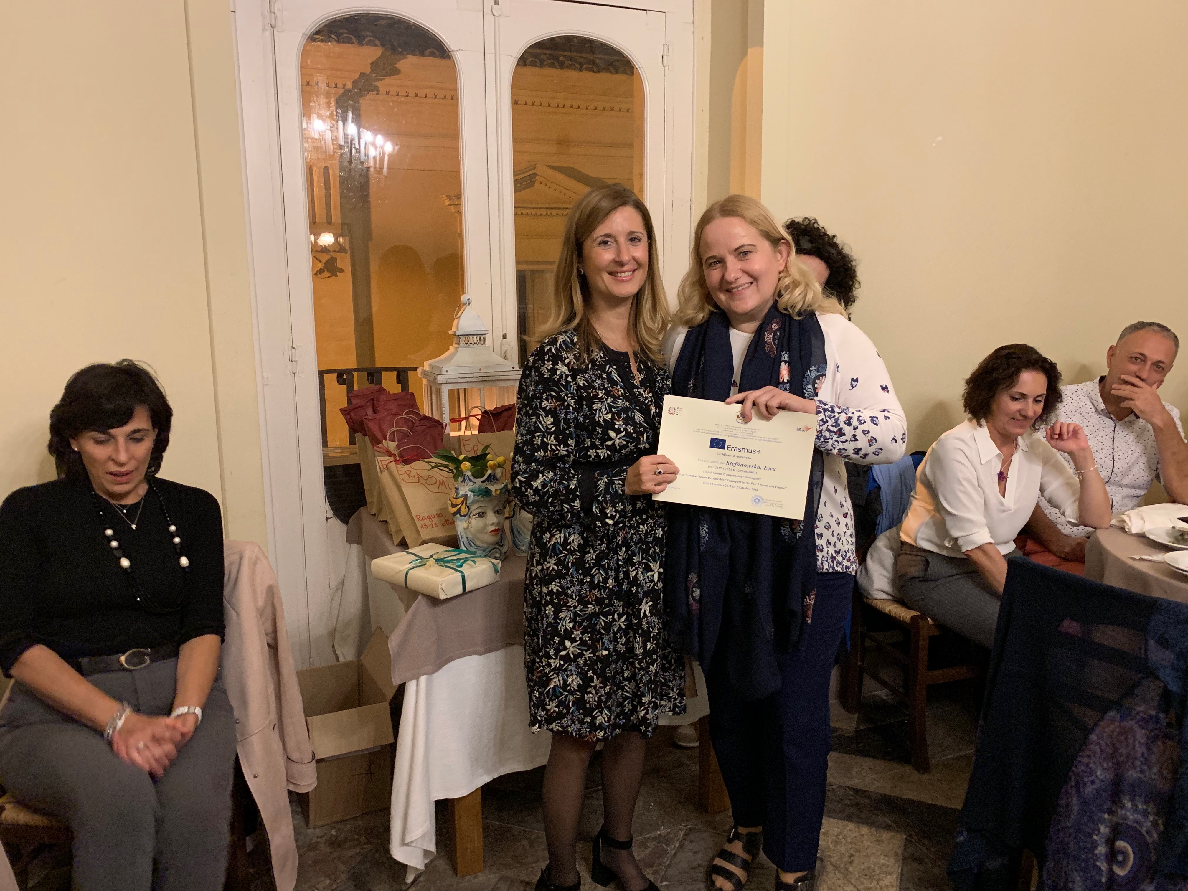 Per finire, l’ottima cena in un ristorante tipico di Ragusa ha posto le basi per amicizie che si coltiveranno in futuro, non solo tra Mogliano e Ragusa, ma anche con i simpatici insegnanti stranieri che hanno sottolineato questo aspetto autentico a conclusione del progetto Erasmus plus: approfondimenti, scambio di esperienze e proposte sul tema scelto (filo conduttore l’inglese) ma pure solidarietà, amicizia, scambi culturali che vanno al di là dell’ambito scolastico.