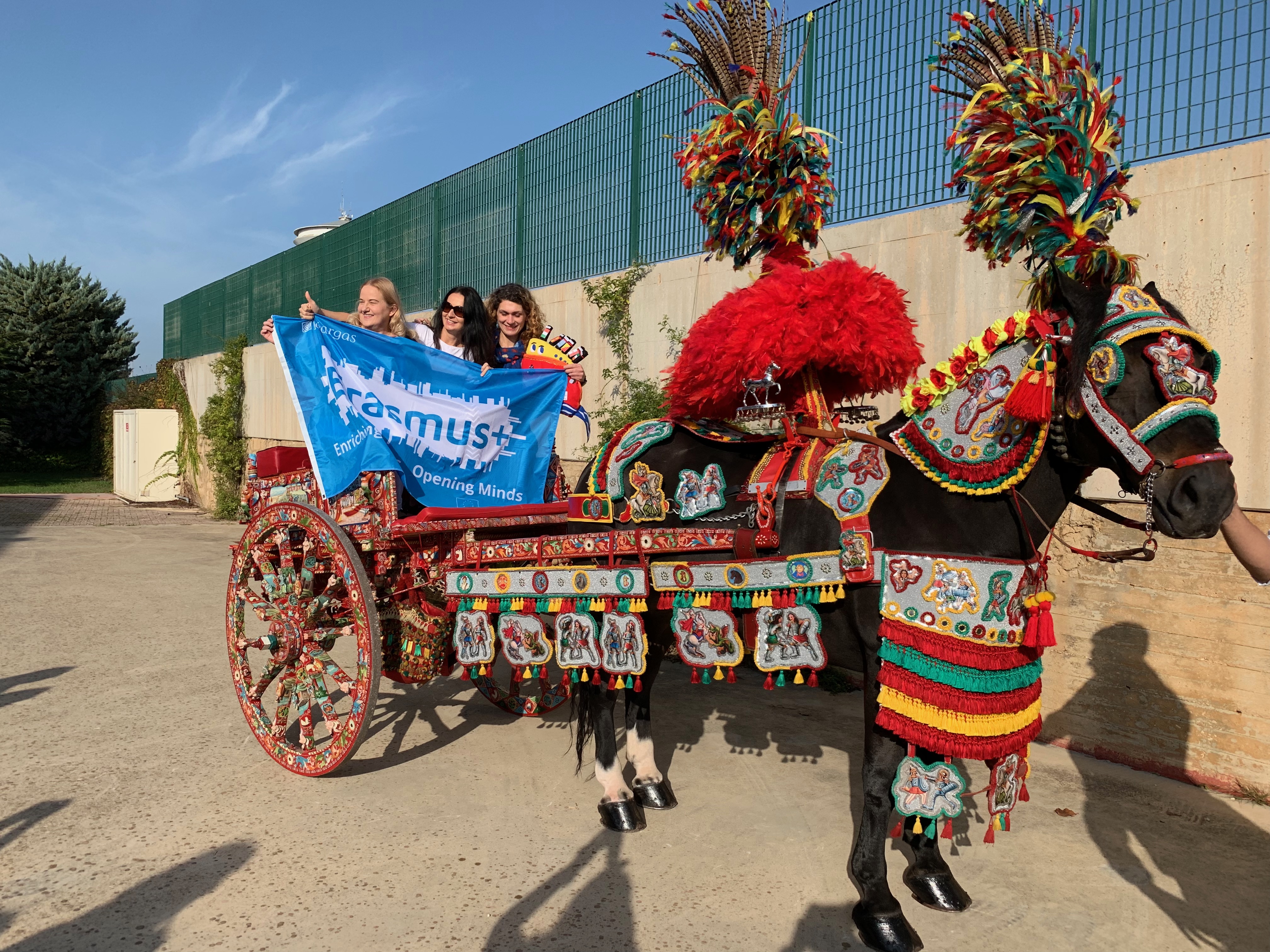 L’accoglienza inizia nel plesso "G. Blangiardo" di Via Berlinguer con l’esposizione di carretti siciliani e auto d’epoca; accoglienza e partecipazione, dunque, con quattro peculiarità che caratterizzano le giornate dedicate al progetto Erasmus Plus che hanno avuto come luogo di incontro, moderna “agorà” didattica, l’Istituto Comprensivo Berlinguer. Sabato 20 ottobre Ragusa ha respirato aria europea come promotrice di uno scambio culturale che, come detto, ha avuto inizio in Irlanda e poi, in primavera quando le insegnanti dell’Istituto sono state ospitate a Mogliano e Petriolo, in territorio maceratese. Carretti siciliani, veri e propri “libri illustrati” della nostra storia e della storia europea (da una parte l’epopea di Carlo Magno e dell’Impero, con Orlando Rinaldo, Angelica e Bradamante, dall’altra la Cavalleria Rusticana con Alfio e Turiddu, Lola e Santuzza, temi tipici illustrati spesso nelle “sponde” laterali dei carretti) come latori di cultura e folklore (la cultura e lo spirito del popolo) e auto (d’epoca, per l’occasione, insieme a vespe e motociclette, anch’esse d’epoca, che rappresentano l’evoluzione dei trasporti locali) e poi anche ricerche che gli alunni hanno svolto, con la collaborazione degli insegnanti, sui trasporti via strada ferrata (classica citazione a Ragusa, quella del famoso “Trenino di Ciccio Pecora”, ora venuto alle cronache con il progetto di metropolitana di superficie). Infine, trasporti del futuro con ricerche sulle “macchine che verranno” e studi sulla robotica, in cui il coding è parte fondamentale. Da notare che un carretto esposto all’interno della scuola, con un cavallo vero, era da ammirare (ed è stato ammirato) proprio per l’eccellente fattura artigianale e artistica e ben figurava come emblema del tema scelto, quello dei trasporti.
