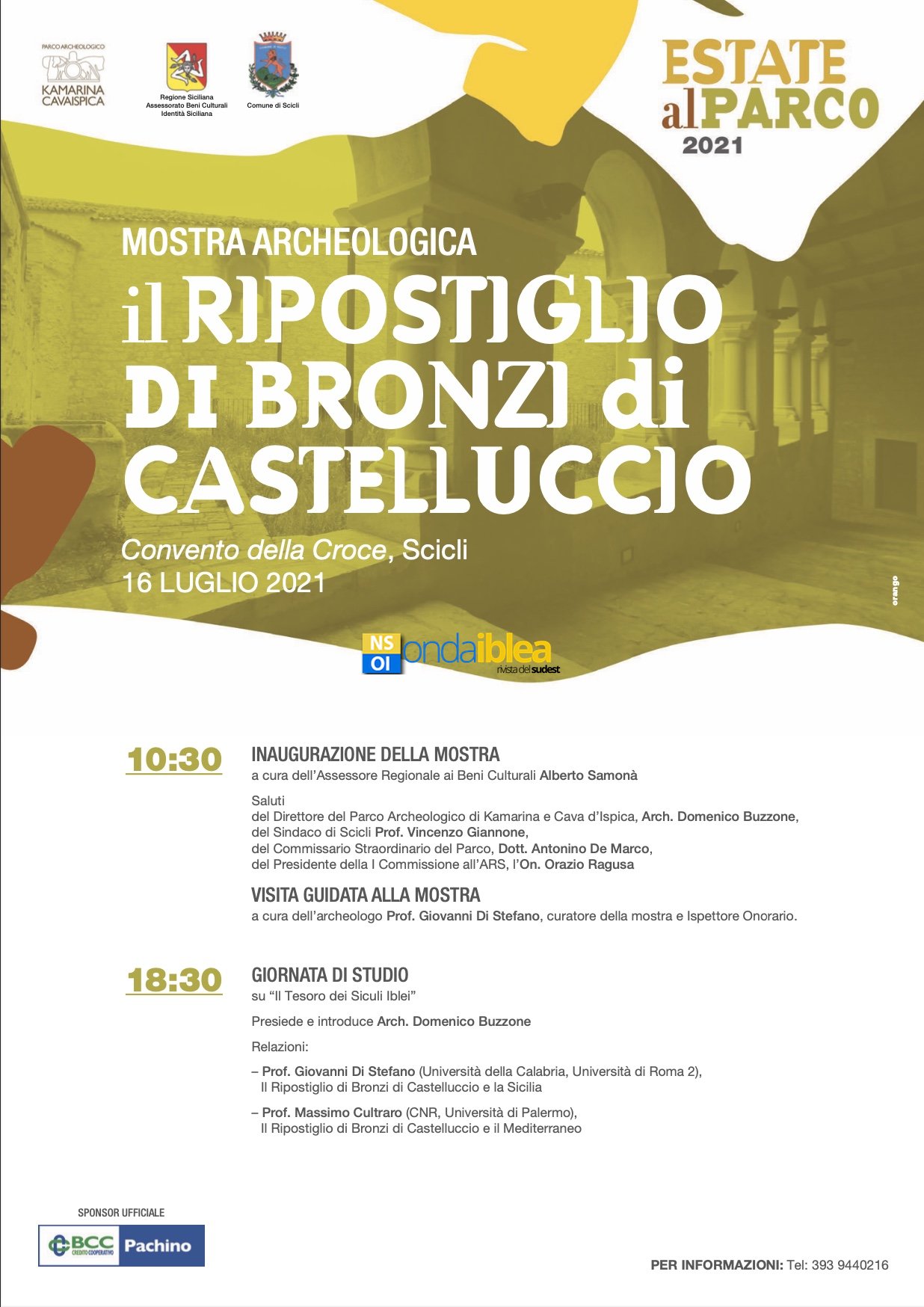 Un cartellone che miscela mostre, spettacoli, passeggiate guidate ed itinerari tematici; che coniuga linguaggi e promuove nuove realtà locali. Il Parco Archeologico di Kamarina e Cava d’Ispica dal 16 Luglio inaugura la stagione estiva 2021 con l’allestimento della mostra “Il Tesoro dei Siculi Iblei. Il Ripostiglio di Castelluccio” al Convento della Croce in Scicli, prolungando anche l’orario di visita del Sito, alle ore 22, ogni domenica dal 25 Luglio, fino al 5 Settembre ed alle 24, ogni sabato dal 7 Agosto, fino al 28 Agosto.