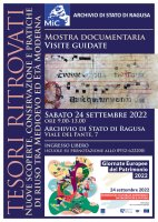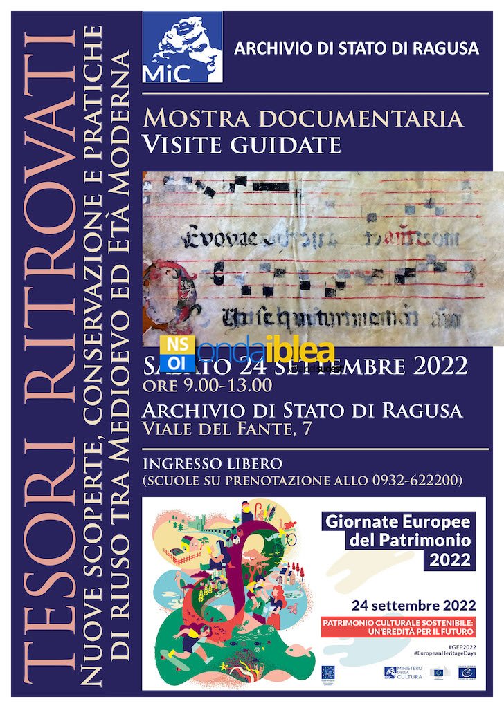Archivio di Stato di Ragusa (Via del Fante): Giornate Europee del Patrimonio, 2022: Mostra Tesori ritrovati: nuove scoperte, conservazione e pratiche di riuso tra Medioevo ed Età Moderna - 24 settembre 2022 (ore 9-13)