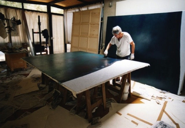 Nella seconda ala del Convento, oltre lo splendido chiostro, le opere del ciclo “Cancellazioni”, con le grandi tele dedicate a Piero della Francesca, e poi gli studi di sottrazione su Millet, e le tele in omaggio a Tintoretto e Vermeer. Nelle ultime sale si trova l’area del ciclo dei “Neri”, attorno ai quali ruota tutta la più recente ricerca di Sarnari, dal grande “Il mare e l’orizzonte” del 2005 (218x200 cm), al gigantesco “Geometrie del Cielo” del 2014 (300x300 cm), per proseguire, tra dettagli di “Nero” puro, attraversando la serie dei “Controluce”, nella sala delle opere “A Monet e Pollock”, dove è protagonista il “Trittico Primavera”. Un lavoro, quello di Sarnari, che non si è mai distratto dalla ricerca pittorica, spostandosi dalla figurazione (nuova figurazione degli anni sessanta) ad una sorta di informale contemporaneo, rappresentato in mostra dall’ermetico ciclo intitolato “Neri”.