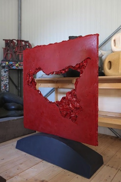 Finestre, più o meno grandi, che si affacciano sul Mediterraneo o che lo chiudono allo sguardo. Finestre che metaforicamente rimandano una immagine riflessa quando lo spazio vuoto è stipato di carrube, elemento e alimento fortemente caratterizzante i luoghi, che racconta di dominazioni, di tradizioni, di anime contadine. Dentro la cornice di una scura finestra di cemento il tappeto di carrube esclude lo sguardo dal diverso, da ciò che esiste lì fuori, ma, nel contempo, diventa mucchio di corpi attorcigliati, bruciati dal sole, scaraventati fuori da zattere di vimini e approdati nelle scatole tecnologiche, rigide finestre aperte su un mondo che atterrisce. V'è una grande apertura di metallo, una struttura reticolare come una gabbia all'interno della quale l'artista ha collocato, esercitando una pressione e disponendo in maniera calcolata le zone di colore, materiali di scarto della nostra quotidianità (riviste accartocciate, quotidiani, tappi di bottiglie, stracci, pezzettini di plastica). Sono rifiuti destinati allo smaltimento e alla distruzione ma diventano parte di un'opera che li sottrae alla morte per rinascere ad una nuova/altra esistenza. La stessa volontà scorre sulla superficie di plastica della finestra zeppa di quotidiani intrappolati e appena leggibili. Bianca è la finestra murata con pezzettini di cartone, classica nella forma, destabilizzante nella materia, emblema della storia di un “tempio” abbandonato in riva al mare di Sampieri. E c'è l'isola, la nostra, contraddittoria e sanguigna, aperta con una breccia attraverso la quale, nei secoli, hanno messo piede popoli geograficamente e culturalmente altri, oggi facenti parte della nostra identità/alterità.