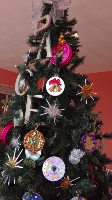 #Ragusa, 16 dicembre 2015 – C’è un albero della Pace particolare al Circolo Didattico Palazzello e gli autori sono i piccoli della Scuola dell’Infanzia Gulliver e Acquarello e quelli della Scuola Primaria. Ad ideare l’albero di Natale, posizionato fuori, al primo piano della Scuola. L’insegnante Maria Grazia Zago ha fatto lavorare tutti i bambini su materiale di recupero quale i vecchi CD inutilizzati su cui i bambini hanno lasciato libera la loro fantasia colorando, attaccando nastri luccicanti, bottoni, perline, pasta cruda, cuoricini ed altri oggettini. Al centro, vicino alla cima, primeggia una grande scritta: ”PACE”, ed il motivo non è banale o casuale.