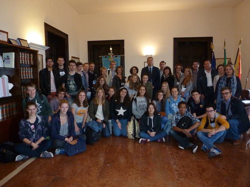 Ispica, 10 novembre 2016 – Visita in municipio e incontro con il sindaco di Ispica Pierenzo Muraglie e con la giunta comunale per gli studenti francesi, spagnoli e tedeschi, ospiti del Liceo “Curcio” e partners del progetto di sensibilizzazione ecologica Erasmus Plus 2014-2017 “Rescuers of nature”.