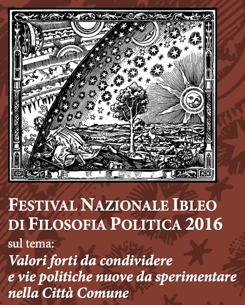 Ragusa, 27 dicembre 2016 – Il 28 e il 29 Dicembre 2016, presso l’aula magna dell’Università di Ragusa Ibla (ex Distretto), si svolgerà il Festival ibleo di Filosofia politica. L’evento si inscrive nel lavoro di ricerca, studio e formazione del MEIC (Movimento ecclesiale di impegno culturale) della Diocesi di Ragusa, promotore dell’iniziativa, e si rivolge a chiunque sia interessato all’evoluzione del pensiero filosofico-politico e alle vie politiche da sperimentare dopo la fine delle ideologie massimaliste.