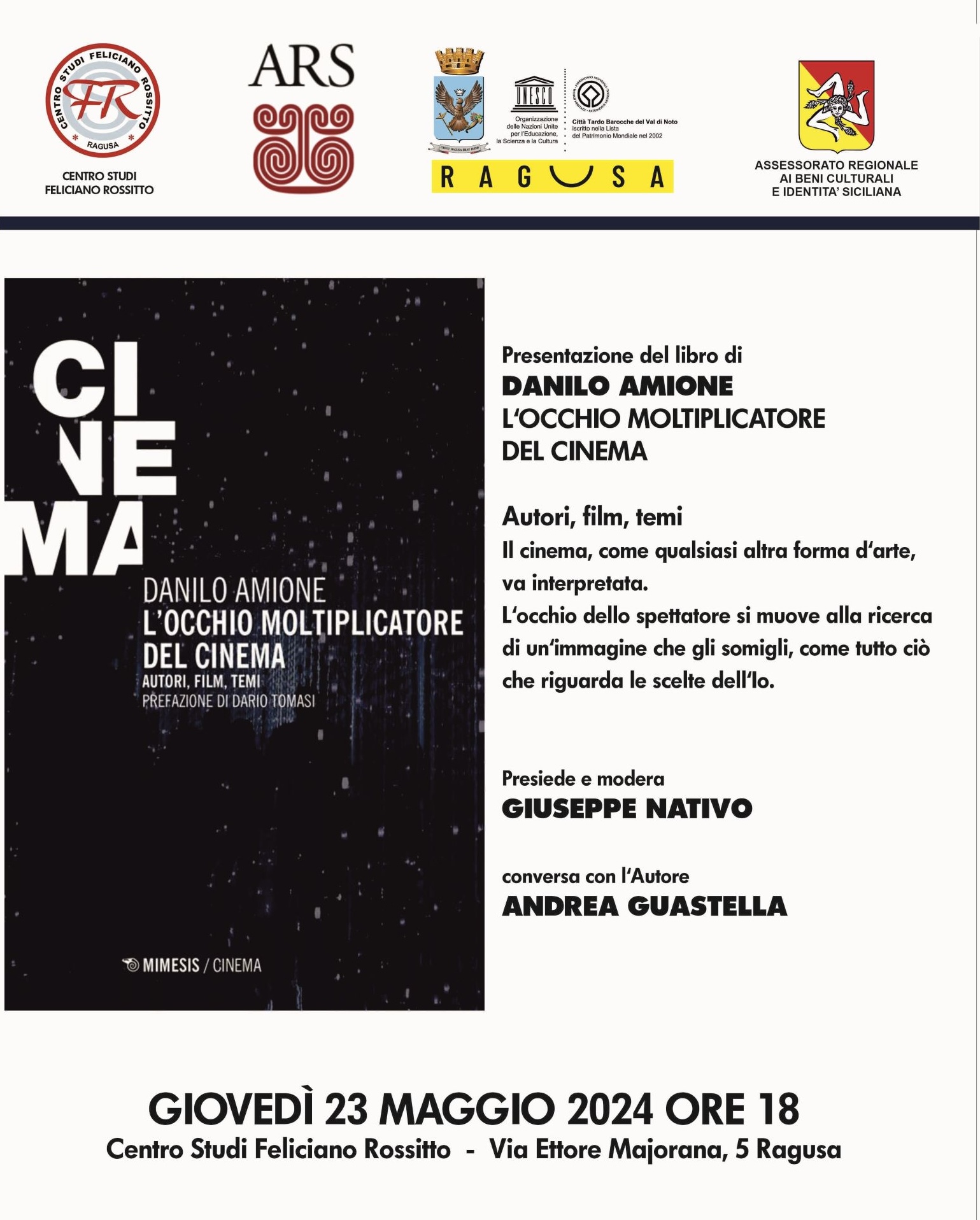 L’utimo libro sul cinema di Danilo Amione sarà presentato a Ragusa, al Centro studi Feliciano Rossitto