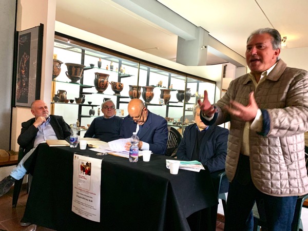 Dopo l'introduzione di Enzo Piazzese (presidente di Archeoclub d'Italia sezione di Ragusa), il prof. Giovanni Distefano (direttore del Polo Regionale di Ragusa per i siti culturali e docente presso l'Università della Calabria e Roma 2 Tor Vergata) ha condotto la conferenza, presentando i saggi contenuti nel libro e dando poi la parola a tre degli autori presenti: il saggista e storico Carlo Ruta, il prof. Massimo Frasca, docente di archeologia classica all'Università di Catania e il prof. Massimo Cultraro, primo ricercatore CNR e docente di preistoria egea e paletnologia presso l'Università di Palermo.