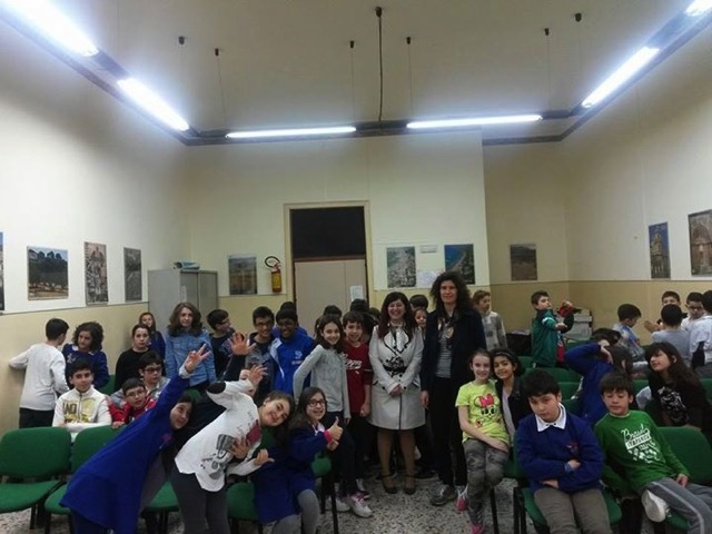 Fantasia e gioco per i piccoli delle classi prime che l’attore Fabio Guastella ha saputo coinvolgere con la sua grande abilità. Dalle classi terze alle quinte la presenza dello scrittore è stata inevitabile. Il giovane Michele Arezzo ha voluto parlare ai bambini del piacere della lettura ed ha letto loro anche un bellissimo testo “La grande fabbrica delle parole”, edito da Terre di Mezzo, dove si parla di un paese in cui le parole sono in vendita e solo i più ricchi possono permetterselo.