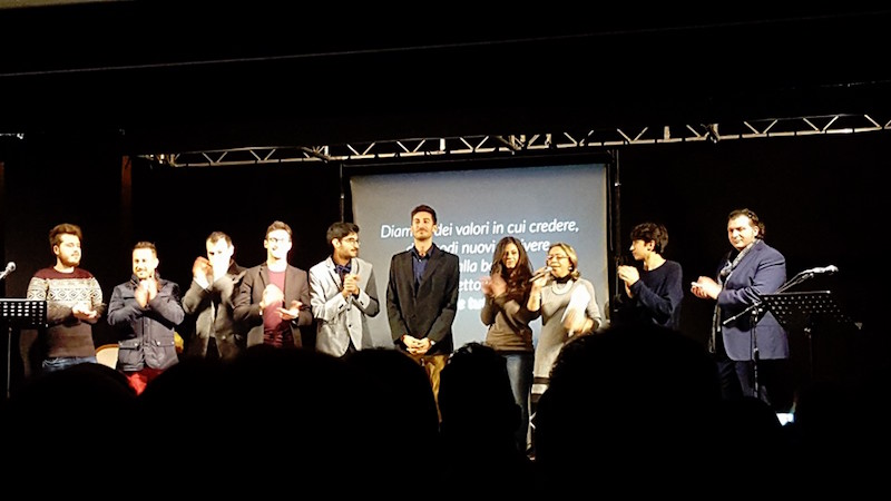 Successivamente si è entrati nel vivo della presentazione, percorrendo i tre capitoli del libro. Essi descrivono l’importanza di migliorare sé stessi (Cap. 1, “Io”, dedicato al talento che ha ognuno di noi), il lavoro di gruppo (Cap. 2, “Noi”, dedicato all’importanza di saper ben lavorare in squadra), di essere di esempio per gli altri e di alzare la voce nella società con costanza e coerenza (Cap. 3, “Noi”). Per “viaggiare” attraverso di essi, ognuna delle tre parti è stata aperta dalla lettura di una storia personale dell’autore, con la voce di Daniele Voi e le proiezioni multimediali di Giuseppe Criscione, che apre il singolo capitolo, per proseguire con l’intervento di “compagni di viaggio” che hanno ispirato Simone nel suo libro: esempi di ragazzi che nel loro impegno e nel loro senso civico, scommettono sulle proprie capacità e sulle proprie passioni senza farsi influenzare da giudizi negativi ma seguendo le proprie aspirazioni, ottenendo risultati inaspettatamente positivi: Giosè Chessari (talento nell’arte) ed Emanuele Malloru (talento nell’autoimprenditoria) per il primo, Fabrizio Occhipinti (responsabile cultura Comitato San Giovanni Battista) e Michael Cabibbo (segretario Youpolis) per il secondo, Marco Marchese (presidente AMS Onlus) per il terzo.