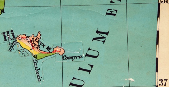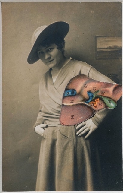 “Imaginary Routes” raccoglie molti dei primi lavori, tra i più conosciuti, sulle foto di famiglia e sulle cartoline antiche ma propone anche il ciclo “Utopia”, dove l’autrice mette in relazione l’istituzionalità della mappa geografica con isole e città immaginarie; il tutto ancora legato dal filo da cucire. Vi sono poi i lavori del ciclo “Flight”, mappe nautiche usate, su cui vivono stormi infiniti di uccelli blu, a mezz’aria, come in uno spazio intermedio tra spettatore d’oggi ed epoca della mappa; e ancora gli inediti “Anatomy”, lavori in cui ritagli di pubblicazioni di anatomia fanno bella mostra, al posto di borse o cappelli, su foto di nobili donne degli anni Trenta.