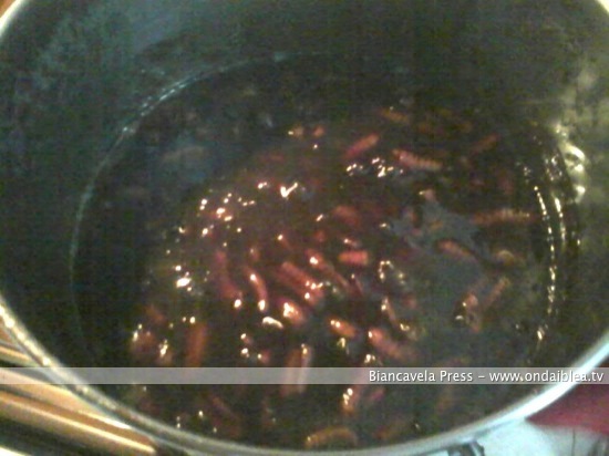 Nel frattempo mettete nuovamente in ebollizione il mosto dolce; se gradite potete aggiungere una scorza d’arancia e della cannella, e quando i “cuddureddi” sono pronti potete farli cuocere nel mosto, per circa un’oretta, assicurandosi che la pasta sia ben cotta.