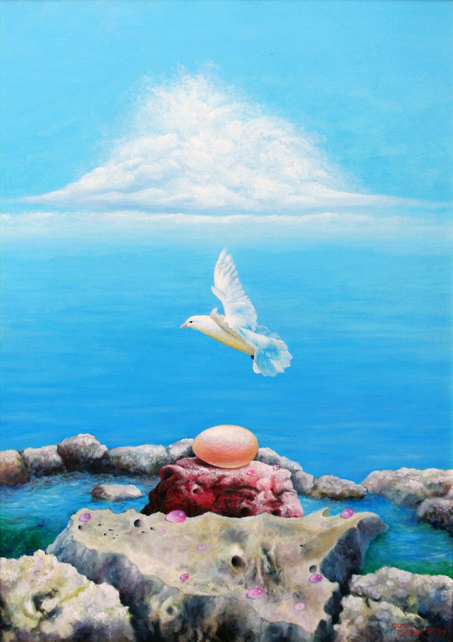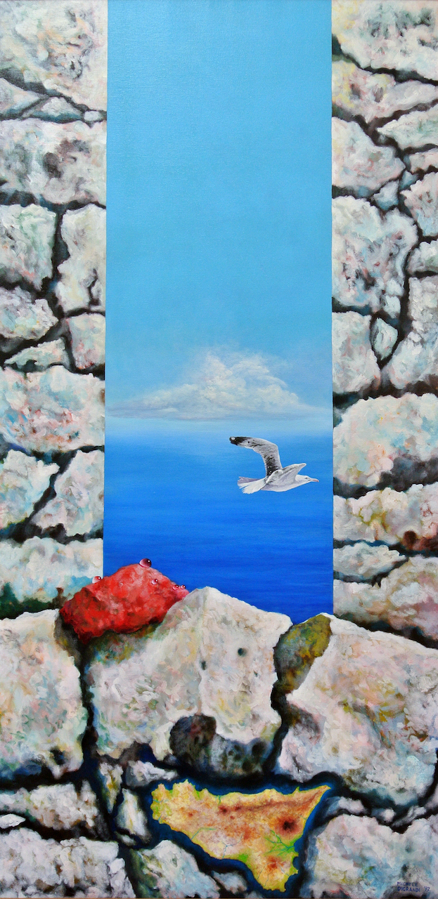La sicilianità e l’attaccamento alla terra di origine trapelano con forza, ma quello che io sento intimamente è il bisogno sempre nuovo dell’artista di rinnovarsi e di rinascere uomo nuovo, partendo dalle sue amate origini, e volando su un cielo azzurro, puro come il suo anelito al raggiungimento di una pace universale.