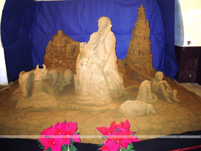 Una novità del Natale 2014 è il “Presepe di sabbia”, un presepe interamente realizzato con i granelli di sabbia. Un presepe diverso dall’immagine classica della Natività in quanto Maria e Giuseppe sono uniti in un unico abbraccio, tenendo insieme il piccolo Gesù Bambino.