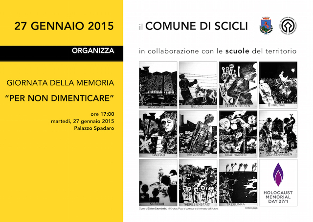 L'Amministrazione Comunale, aderendo all'invito del Prefetto, Annunziato Vardé, organizzerà una serie di iniziative al fine di dare particolare e significativo rilievo alla "Giornata della Memoria". Pertanto, il Comune di Scicli in collaborazione con le scuole di ogni ordine e grado del territorio comunale, invita la cittadinanza tutta, a partecipare alla momento di riflessione, che si terrà giorno 27 gennaio 2015 alle ore 17, presso la Sala "Falcone Borsellino" di Palazzo Spadaro, al fine di sensibilizzare soprattutto le giovani generazioni per conservare la memoria storica di un tragico ed oscuro periodo della storia del nostro Paese e dell'Europa.