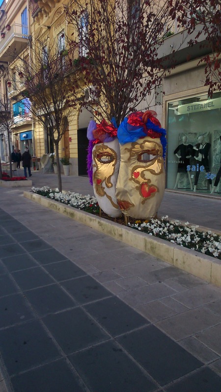 #Ragusa, 1 febbraio 2016 – Le tre aiuole di Via Roma curate dagli alunni che frequentano la Scuola Ecce Homo che hanno aderito all'iniziativa del Comune “Adotta un vaso”, sono state arricchite in questi giorni, sempre a cura dei bambini dello stesso istituto, con delle mascherine che richiamano il tema del Carnevale.