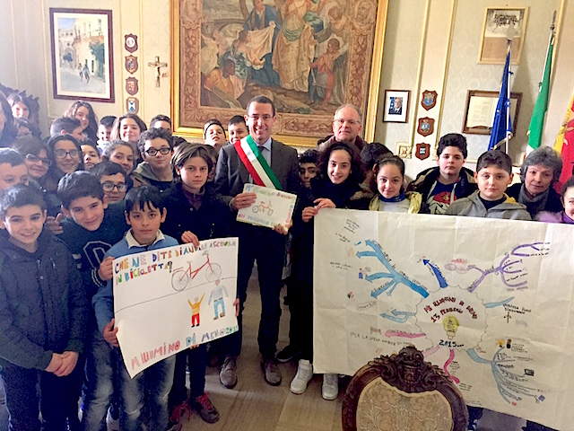 Il commissario straordinario del Comune, Ferdinando Trombadore, ha ricevuto ieri in Municipio gli studenti della prima C e della prima D dell’Istituto Elio Vittorini a un mese dalla lettera con cui invitavano il Comune ad aderire a “M’illumino di meno”, della trasmissione Caterpillar, di Radio Due Rai.
