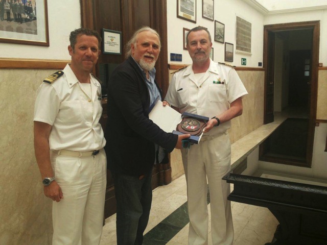 Siracusa, 29 giugno 2015 – Durante lo svolgimento degli appena conclusi spettacoli classici, nell’anno della “trilogia del mare”, sono state molto gradite le visite nella sede della Guardia Costiera di Siracusa di Moni Ovadia, regista ed interprete della tragedia “Le Supplici” di Eschilo, e di Sebastiano Lo Monaco, interprete di Agamennone nell’”Ifigenia in Aulide” di Euripide.