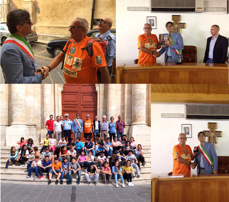Il benvenuto al podista, a Palazzo di Città, nell’aula consiliare, questa mattina l’ha dato il sindaco Corrado Calvo alla presenza dell’assessore allo Sport Michele Floriddia, del Responsabile del Settore Sport Salvatore Covato e di alunni e insegnanti di alcune classi degli Istituti Comprensivi cittadini. Il Sindaco Calvo nel ringraziare l’ex alpino per avere scelto Rosolini come tappa, si è congratulato con lui per la sua impresa sottolineando non solo l’importanza del gesto sportivo e atletico, ma anche per il messaggio di alto valore sociale che sta trasmettendo in questa grande sfida.