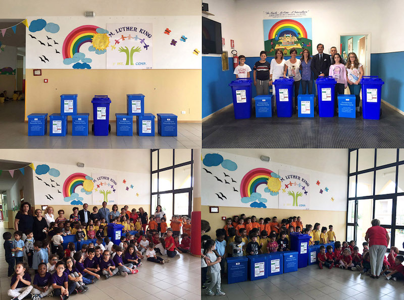 Nelle settimane scorse i nuovi contenitori sono stati distribuiti e lo sono tutt’ora, sia a tutti gli esercizi commerciali che alle famiglie del territori comunale. Adesso, è stata la volta degli istituti scolastici cittadini.
