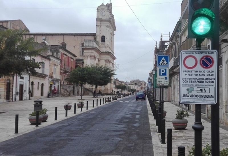 Canicattini Bagni. Non barriere ma semafori nell'isola pedonale