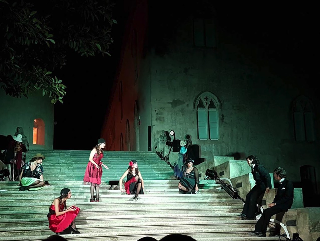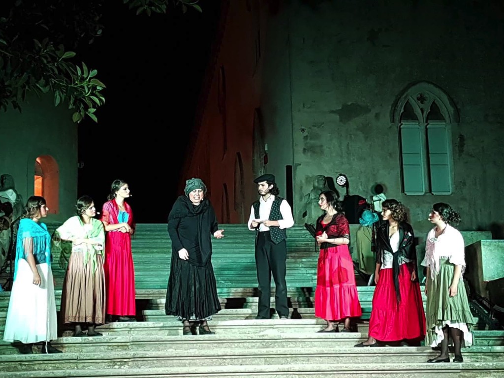 Sulla scalinata annessa al castello, gli attori, tra cui molti giovani leve della Compagnia Godot, hanno cambiato pelle e stile e movenze e abito e toni per passare da un personaggio all’altro cavalcando l’onda pirandelliana che li ha totalmente avvolti in quell’atmosfera omonima volutamente resa dalla regia. Dalla signora Frola e il signor Ponza all’umorismo di Zi Dima, dall’aria smarrita e perplessa dei sei personaggi in cerca d’autore alla maschera da menagramo del signor Chiarcaro e così via.