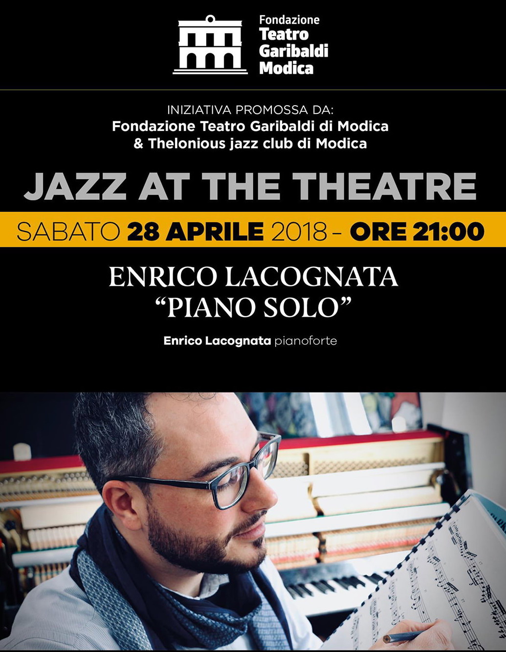 Ragusa, 23 Aprile 2018 – Jazz at The Theatre: Il secondo appuntamento di qualità con la musica jazz al teatro Garibaldi di Modica, sabato 28 Aprile 2018 alle 21, vedrà protagonista sul prestigioso palco il maestro Enrico Lacognata in "Piano solo".