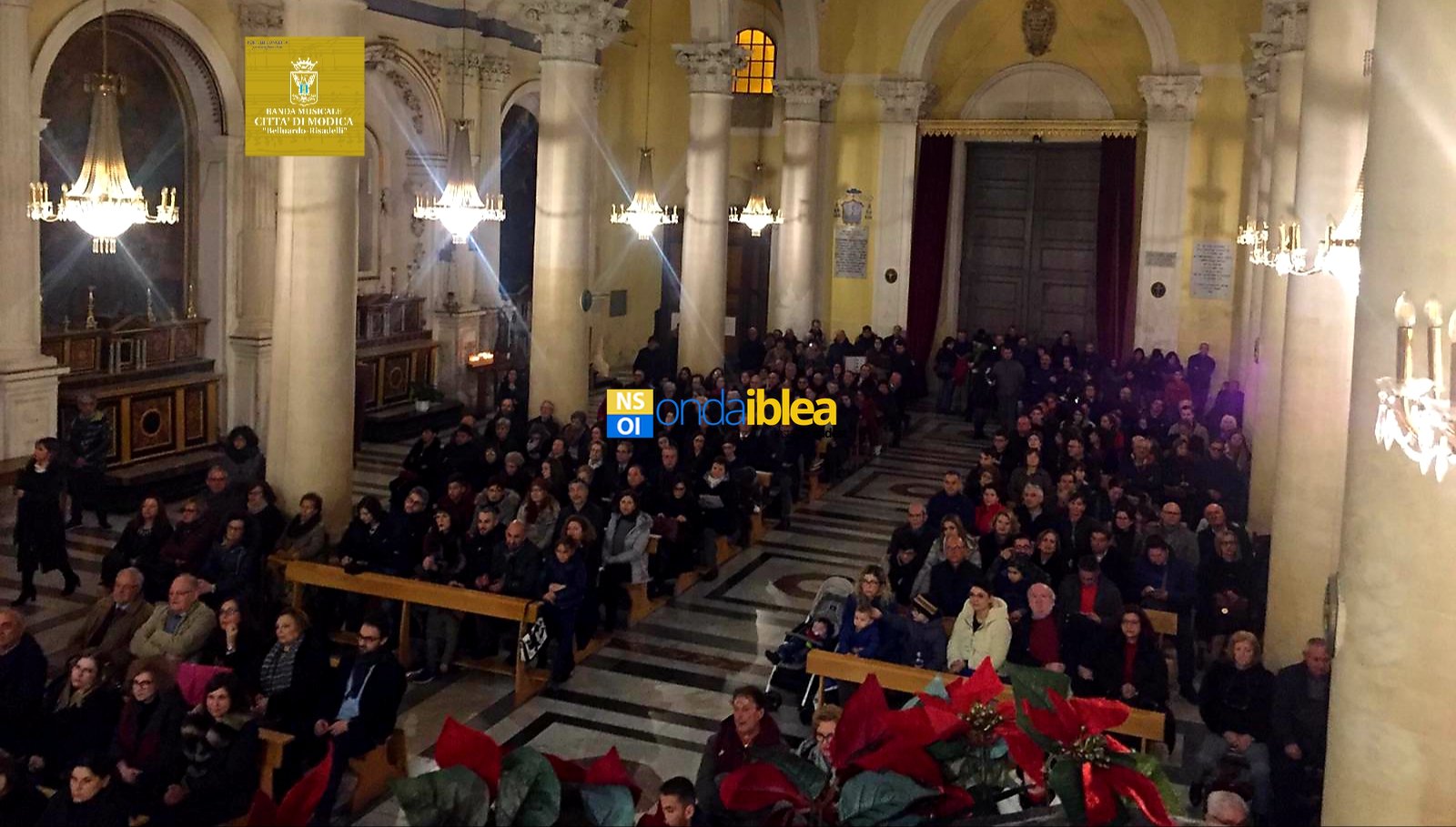 Davanti ad un pubblico che ha gremito la chiesa all’inverosimile, si è esibita la banda musicale “Citta di Modica – Belluardo Risadelli”, che come consuetudine da 5 anni a questa parte, ha offerto gratuitamente il concerto. Negli anni passati il concerto e stato ospitato nella Chiesa di San Giorgio, di san Pietro e al teatro Garibaldi.
