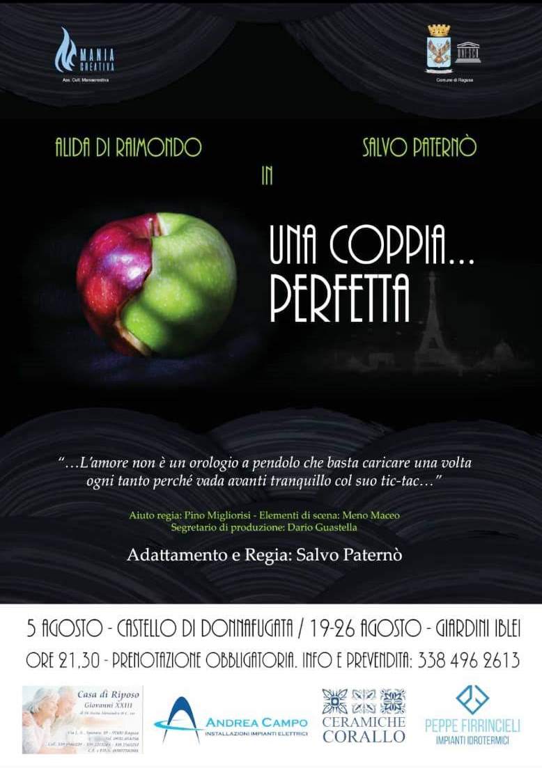 Questo è il leitmotiv della commedia Una Coppia Perfetta, per la regia di Salvo Paternò, l'aiuto regia di Pino Migliorisi, che sarà portata in scena il 5 agosto a Donnafugata, con varie repliche previste per i giorni 19 e 26 agosto ai Giardini Iblei di Ragusa.