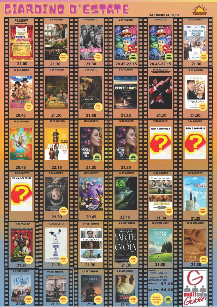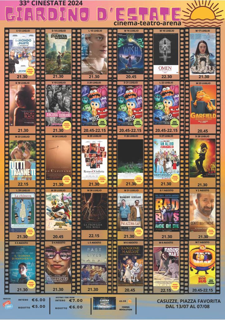 Tranne in qualche caso, è in calendario un film al giorno, con inizio alle 21:30.
