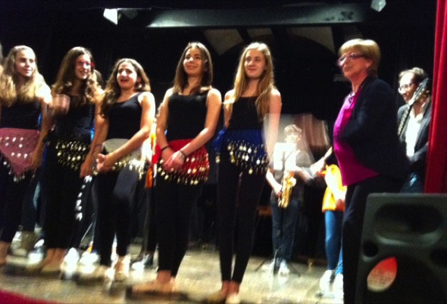 Tra il primo ed il secondo tempo la presidente dell’Agimus, Marisa Di Natale, ha sorpreso ancora una volta il pubblico con una esibizione del coro multietnico da lei diretto all’ l’istituto Comprensivo Dantoni di Scicli, i cui ragazzi hanno dimostrato doti canore non usuali e facile rapporto con le lingue straniere, visto che i brani eseguiti hanno abbracciato la Russia, la Sicilia, la Colombia, il Marocco, la Tunisa, l’Albania, il Kossovo e la Cina. I temi delle canzoni parlavano di dolce nenie e ninna nanne, di fratellanza e di amore e di gentilezza. “Vogliamo pensare ai giovani fino alla fine- ha sottolineato la presidente Di Natale- e non dimenticare che i nostri ragazzi possono vivere insieme senza distinzione di pelle, religione e lingua.”