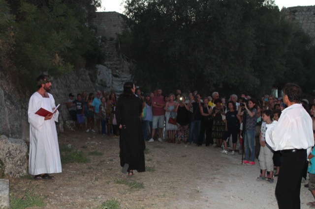 Seguendo Dante e Virgilio si è intrapreso un viaggio nella stupenda e celebre opera dantesca, all’interno della suggestiva cornice storico – archeologica della “Civitas”; tra i ruderi e gli arbusti, carichi di storie e vite vissute, momenti indimenticabili e unici si sono fusi tra teatro, musica dal vivo con il maestro Valerio Massaro e Jonathan Marsiano, i movimenti coreografici di Rita Gurrieri, Tatiana Bonnici e Le Perle del Nilo. Il pubblico, in un silenzio asettico, si è inoltrato lungo il percorso incontrando ora Francesca e Caronte con le anime dannate, ora Ulisse e il Conte Ugolino, Matelda e Manfredi, per poi “uscire a rivedere le stelle” davanti al castello, dove gli angeli e i santi a schiera hanno dato vita ad un quadro di rara bellezza. Bravi gli interpreti: Deborah Lentini, Giovanni Peligra, Carmelo Gugliotta, Vania Orecchio, Bartolo Mineo, Adriano Longo, Giulia Acquasana, Carmen Bramanti, Marialaura Garrotto, Antonio Cusumano, Marco Scuotto, Francesca Prado, Valentina Puccio, Alessia Giaquinta, Carmela Giaquinta, Carmen Vicari, Totò Messina, Priscilla Ficicchia, Samuele Callari, Giulio Scariolo, Francesca Bucchieri, Simone Cusumano, Giusi Lisi e Lucia Imprescia.