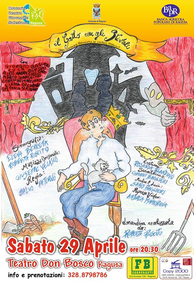 Ragusa, 24 aprile 2017 – Sabato 29 aprile, alle 20,30, presso il Teatro Don Bosco dei Salesiani, i ragazzi che frequentano l’Oratorio Centro Giovanile Salesiano, dopo un anno di formazione, metteranno in scena lo spettacolo teatrale “Il Gatto con gli Stivali” tratto dall’omonimo racconto di Charles Perrault.
