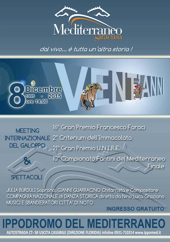 #Siracusa, 3 dicembre 2015 – È tutto pronto per la celebrazione del 20° anniversario dell’Ippodromo del Mediterraneo di Siracusa.