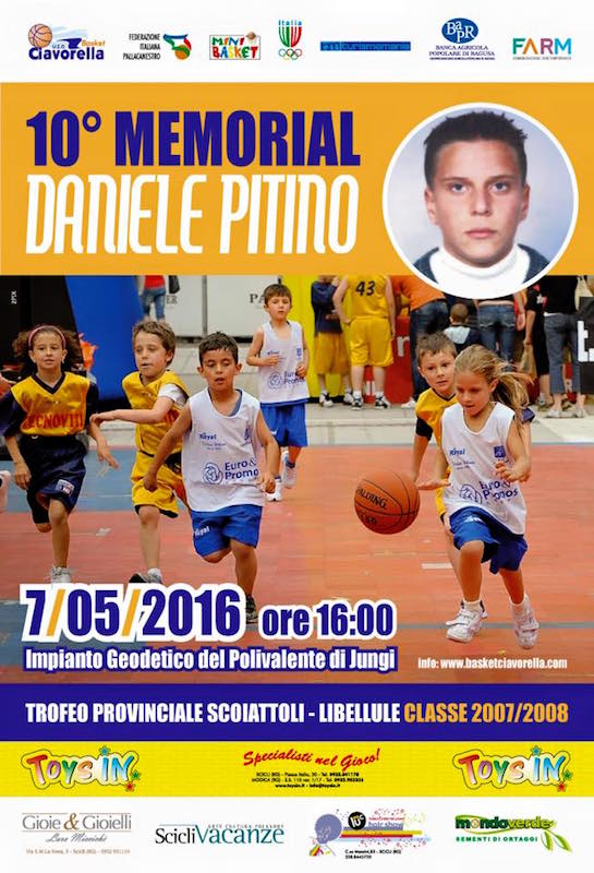 Giorno di festa, di divertimento e di amicizia sportiva per i giovanissimi del minibasket provinciale categoria Scoiattoli – Libellule (classe 2007 – 2008) che Sabato 7 maggio si raduneranno a Scicli, al tensostatico di Jungi, per celebrare la decima edizione del Memorial “Daniele Pitino”