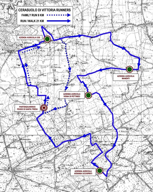 21 chilometri tutti da scoprire, un percorso affascinante e divertente allo stesso tempo, tra i viottoli e i filari delle vigne. Marco Marangio, sportivo e associato dell’A.S. “No al doping” che ha contribuito a misurare e definire il percorso, ci racconta qui il circuito della Cerasuolo di Vittoria Runners - Gara tra le strade del vino: "Ogni passo - dice - sarà una novità, che metterà i corridori in uno stato d’animo di scoperta minuto dopo minuto".