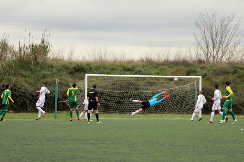 Al 44', comunque, dopo un sinistro dal limite di Calabrese, un difensore ospite intercetta il pallone con un braccio inducendo il direttore di gara ad assegnare il penalty ai gialloverdi: dagli undici metri è ancora Messina a mandare il pallone in rete per la sua doppietta personale col Palazzolo che chiude la prima frazione in vantaggio di due reti.