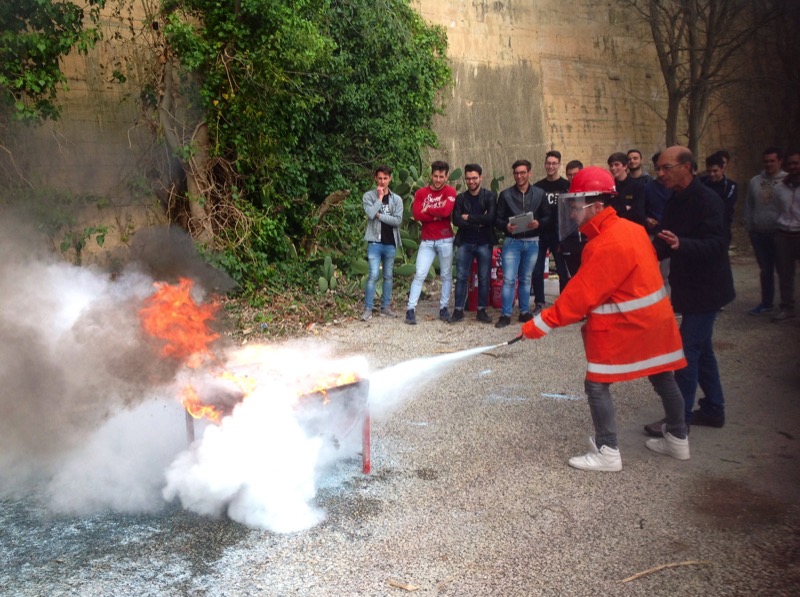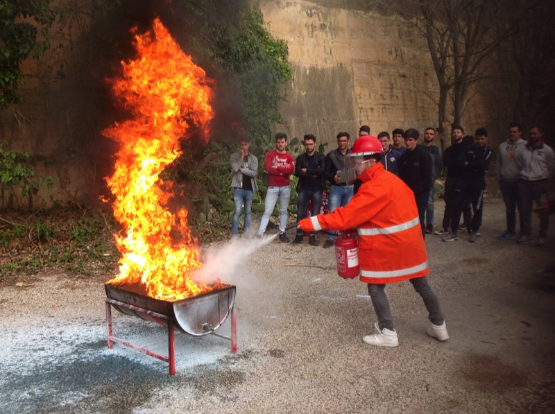 Gli studenti, ragazzi e ragazze di IV e V anno, hanno così potuto, sotto la guida attenta e rigorosa del docente, Giancarlo Iurato (SAC srl di Comiso), e avvalendosi di attrezzature generosamente offerte da Luca Calabrese (Gamma Estintori di Ragusa), sperimentare le conoscenze acquisite e le abilità nello spegnimento di incendi, provocati ad arte presso l'azienda "setting" della verifica, messa a disposizione da Leonardo Licitra (ILAP SpA di Ragusa).