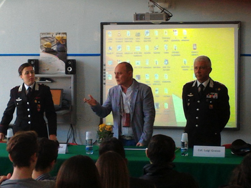Si è parlato infatti di legalità, il Colonnello Grasso ha affrontato il tema della violenza di genere, soprattutto dello stalking, delle violenze in ambito familiare, del bullismo e cyberbullismo. La discussione si è poi rivolta alla sicurezza stradale e a come prevenire le migliaia di incidenti che ogni anno si verificano in Italia, con circa 3500 morti, la maggior parte dei quali sono tutti giovani, poco più che adolescenti. I ragazzi hanno fatto numerose domande, specie per quanto riguarda i fenomeni di violenza di genere e hanno chiesto quali sono i modi per prevenire questi tipi di reati, come ci si può difendere e come poter aiutare qualcuno che è vittima di questi soprusi. Il Colonnello Grasso ha spiegato loro cosa la legge prevede e tutte quelle accortezze che bisogna adottare quando si è vittime o quando si viene a conoscenza di atti del genere, consigliando di parlare sempre, in prima battuta con la famigli, subito dopo con gli insegnanti e con le Forze dell’Ordine.