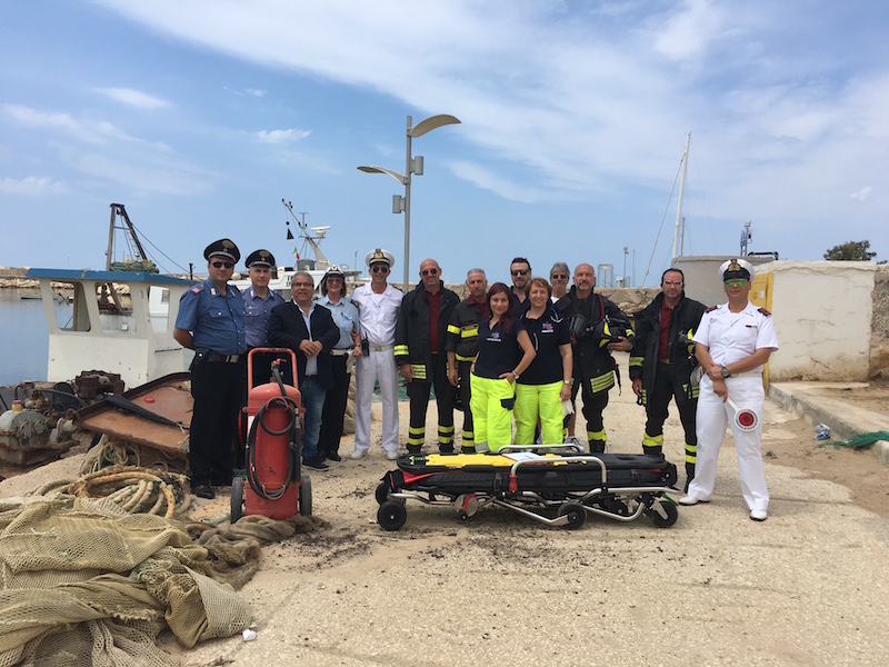 Questa la simulazione di emergenza che si è svolta ieri all’interno del Porto di Scoglitti, , sotto il coordinamento della locale Guardia Costiera con l’ausilio tecnico di personale dei Vigili del Fuoco di Ragusa, del 118, Carabinieri della locale Stazione, Vigili Urbani, Protezione Civile del Comune di Vittoria, dei gestori di servizi operanti all’interno del porto nonchè di una rappresentanza della Prefettura.