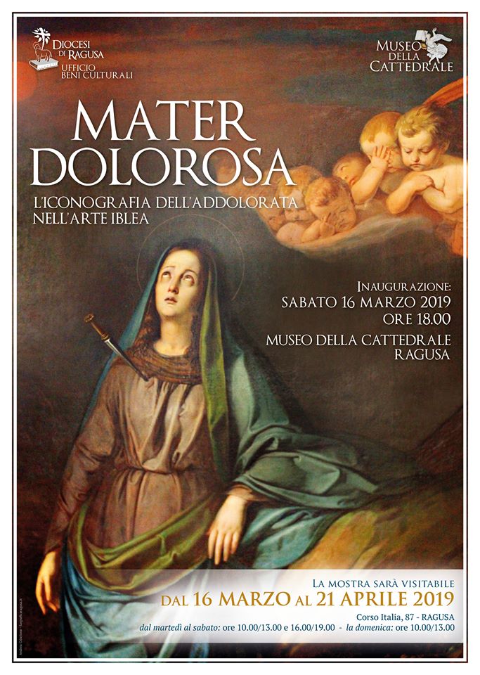 Ragusa, 14 marzo 2019 – Si inaugura sabato 16 marzo, alle 18, la mostra “Mater Dolorosa - L’iconografia dell’Addolorata nell’arte iblea”, promossa dall’ufficio diocesano per i Beni Culturali, diretto da don Giuseppe Antoci, e curata da Stefano Vaccaro e Alessandra Rovetto.