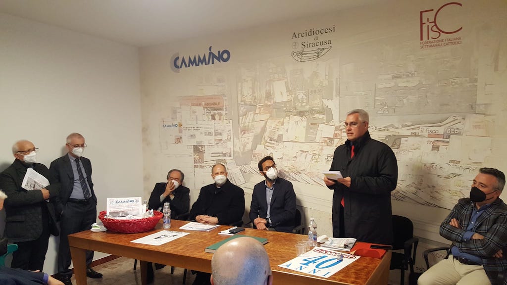 Siracusa, 29 marzo 2022 — «I giornalisti stanno vivendo, forse più di altre categorie, una crisi difficile, dalla quale non sarà facile rialzarsi. Iin un periodo nel quale assistiamo alla scomparsa dei giornali, soprattutto dei quotidiani, celebriamo il 40esimo anniversario del settimanale cattolico della nostra Diocesi, Cammino, che esprime la capacità di rinnovarsi nel servizio della verità, nel sostegno alla missione evangelizzatrice della Chiesa e nel confronto con i segni dei tempi».