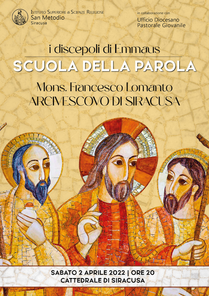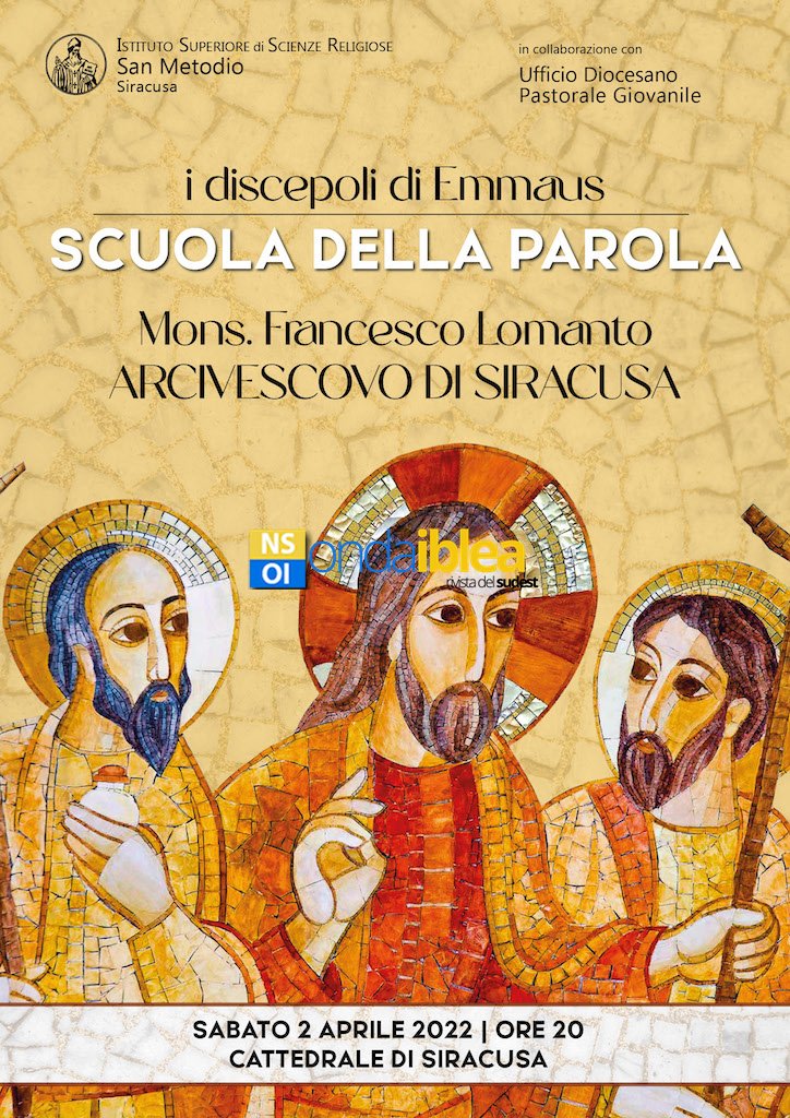 Siracusa, 31 marzo 2022 — Torna la Scuola della Parola nella chiesa Cattedrale di Siracusa. Sabato 2 aprile, alle ore 20, mons. Francesco Lomanto incontrerà i giovani della Diocesi. Tema dell’incontro, promosso dall’Istituto Superiore di Scienze Religiose San Metodio e dall’Ufficio diocesano per la Pastorale giovanile, sarà “I discepoli di Emmaus”.